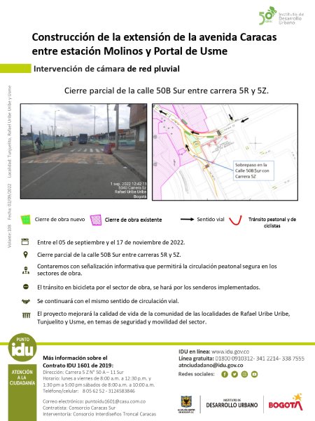 ¡Atención comunidad usmeña! Ten en cuenta las afectaciones viales por avance de la obra #ExtensiónDeLaTroncalCaracas, esto será a partir de hoy 5 de septiembre hasta el 17 de noviembre de 2022. Conoce los desvíos vehiculares.
