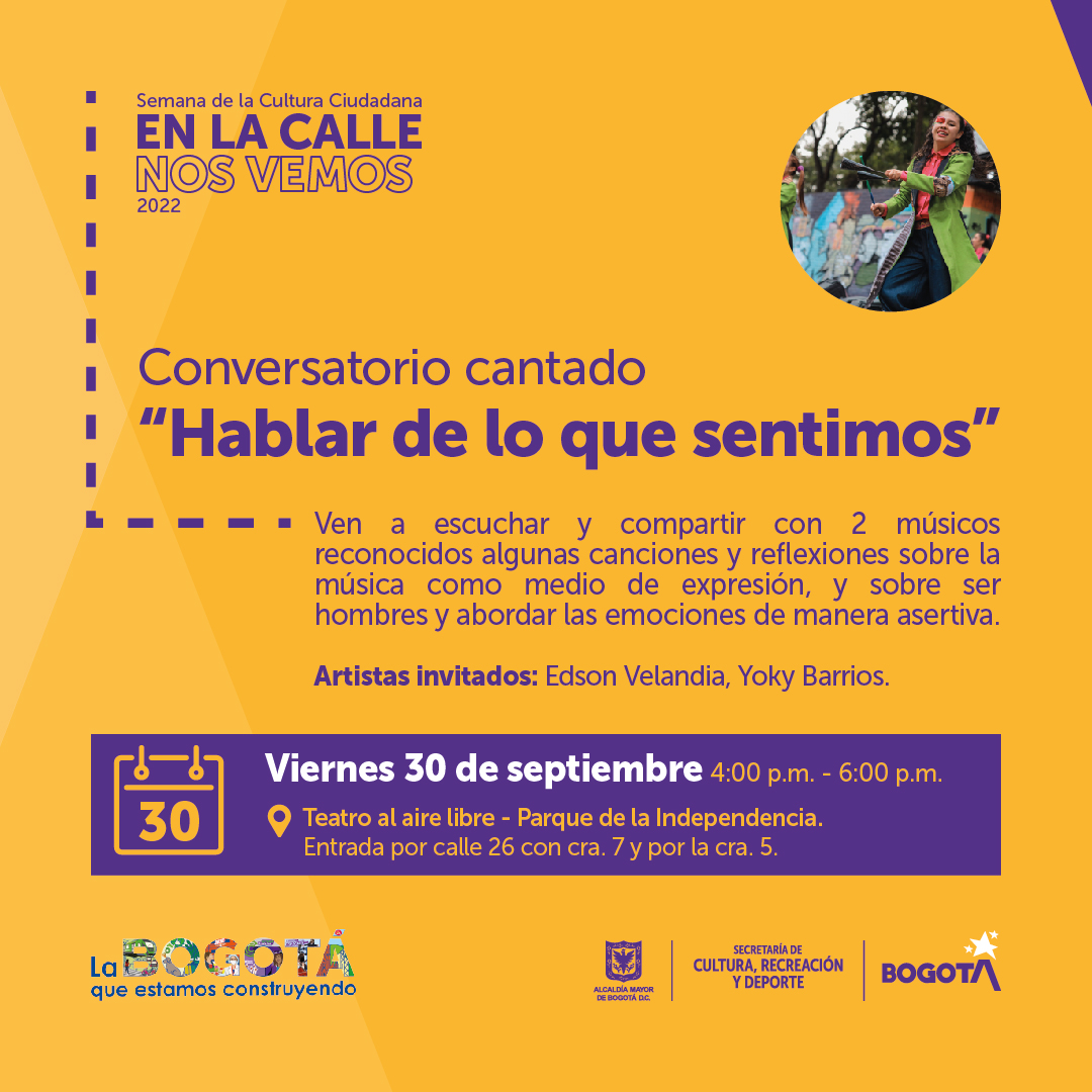 Edson Velandia y Yoky Barrios abrirán la Semana de la Cultura Ciudadana poniéndonos las emociones a flor de piel en un conversatorio cantado.
