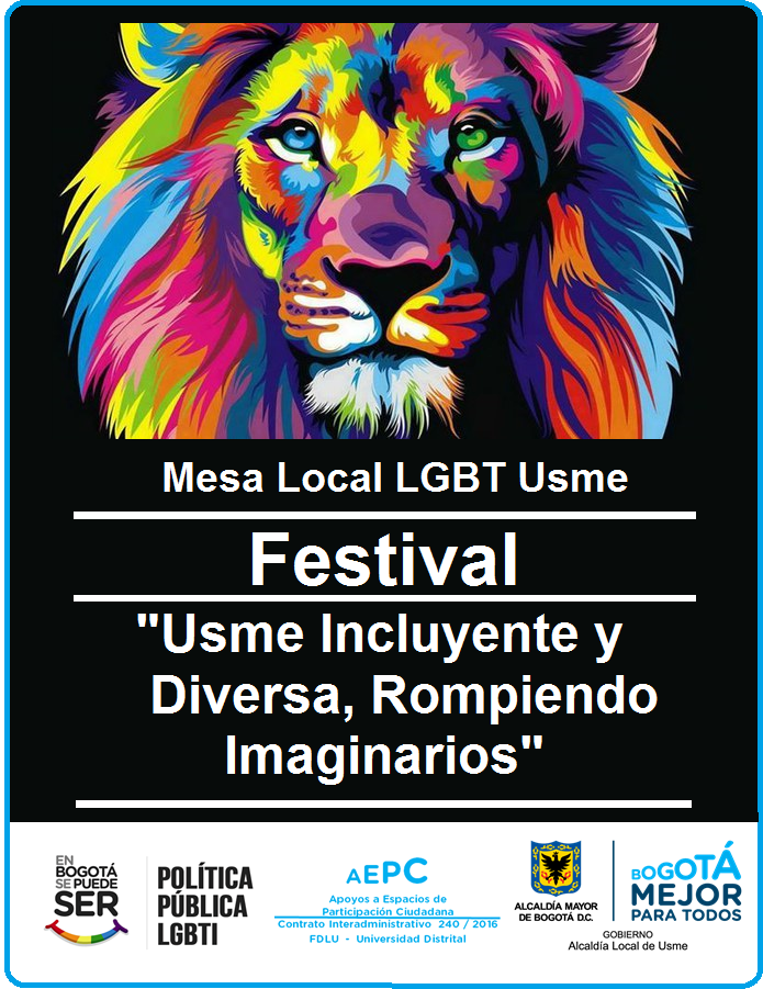 Este 30 de septiembre se realizará en la Localidad el Festival Usme Incluyente y Diversa, en la cancha del barrio Marichuela (calle 76 sur No. 1 B 44) a partir de la 1:00 p.m. organizada por la mesa Local LGBT con el apoyo de la Alcaldía Local de Usme.