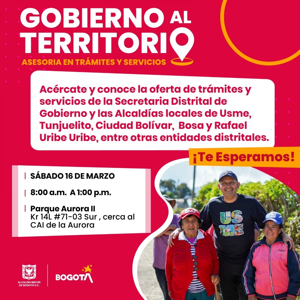 ¡Gobierno al territorio! Este próximo 16 de marzo, te esperamos en el Parque La Aurora 2. ¡Acércate y descubre la amplia oferta de trámites y servicios que la Secretaría de Gobierno y las alcaldías locales tienen para ti! ¡No te lo pierdas!