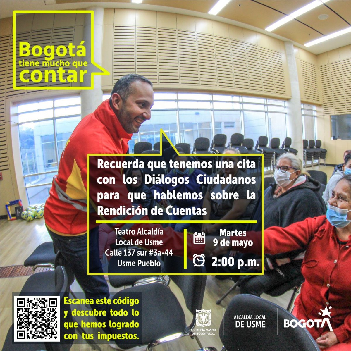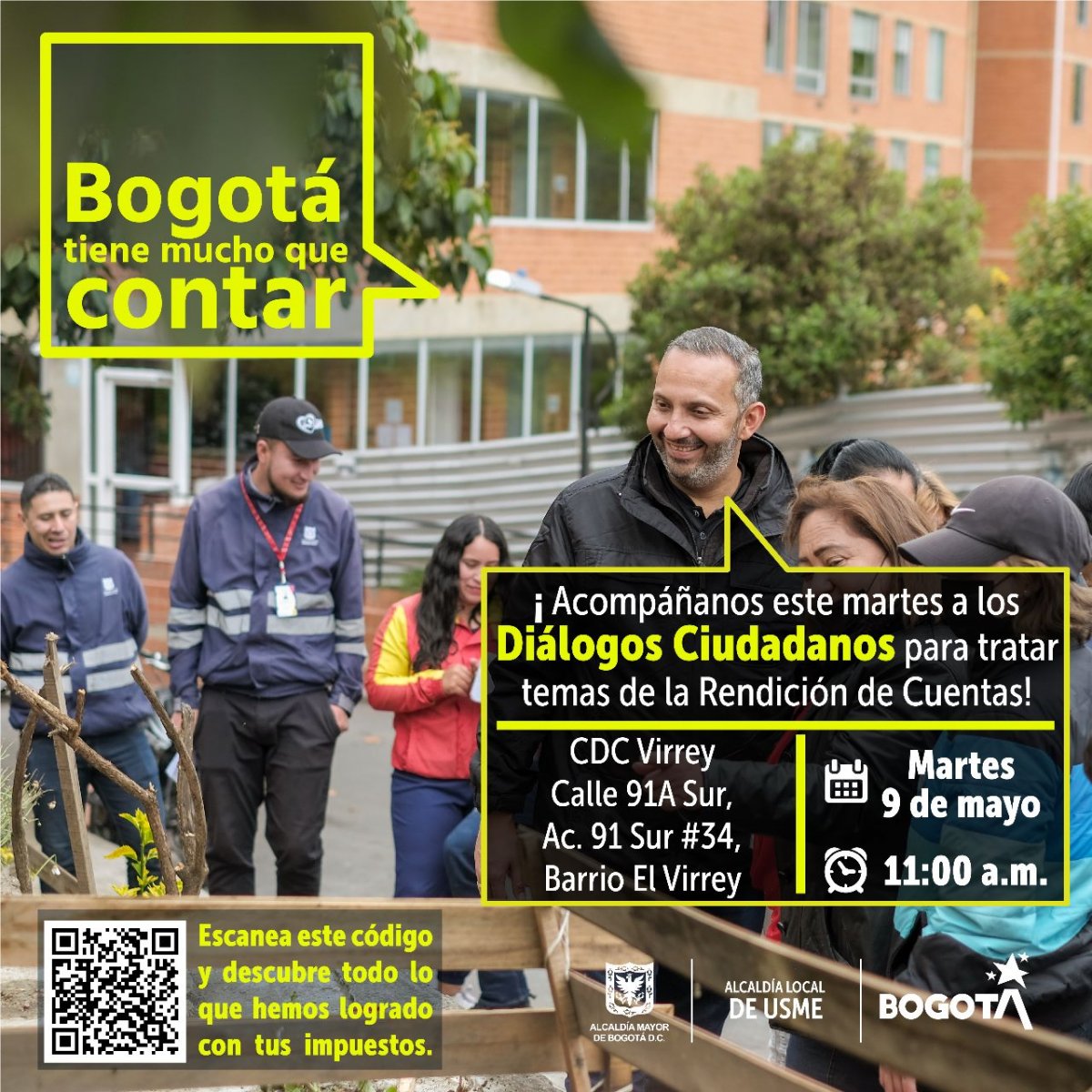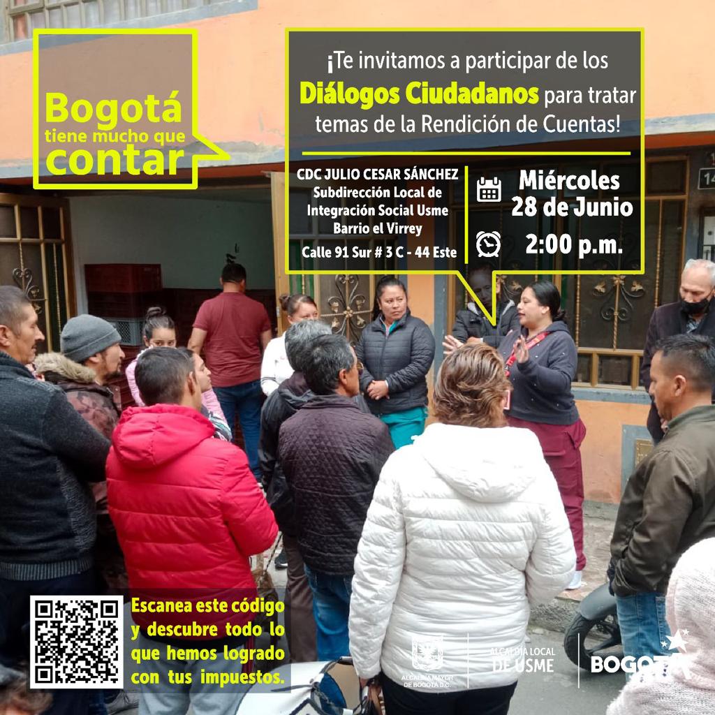 | Sexto Dialogo Ciudadano | 28 de junio | 2:00 p.m. | CDC Virrey Calle 91A Sur, Ac. 91 Sur #34, barrio el Virrey |