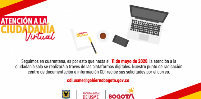 Nuestro punto de radicación, centro de documentación e información CDI recibirá sus solicitudes a través del correo electrónico cdi.usme@gobiernobogota.gov.co