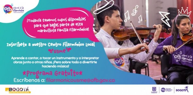 Aún quedan cupos disponibles para sumarte al programa gratuito de la Orquesta Filarmónica de Bogotá, solo tienes que escribir a filarmonicousme@ofb.gov.co o 313 8569701