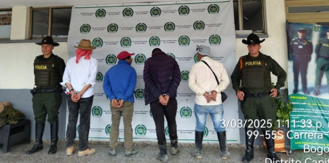 Con el respaldo de la Policía de Carabineros de Bogotá y la Corporación Autónoma Regional (CAR), se logró la captura de cuatro personas que fueron sorprendidas infringiendo la normatividad ambiental, quienes ahora enfrentarán cargos por delitos ambientales según el artículo 336 del Código Penal.